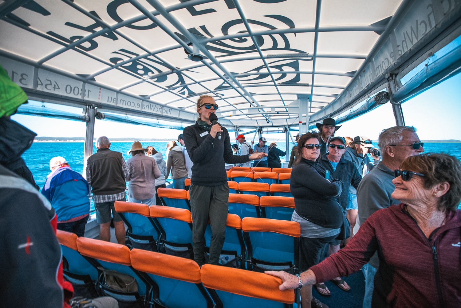 Guests aboard the Ocean Defender, a custom-designed vessel limited to 38 passengers, experience Hervey Bay with space and clarity. Forward-facing seating, shaded decks, and water-level “whale’s eye” views create a direct and immersive connection to the environment.