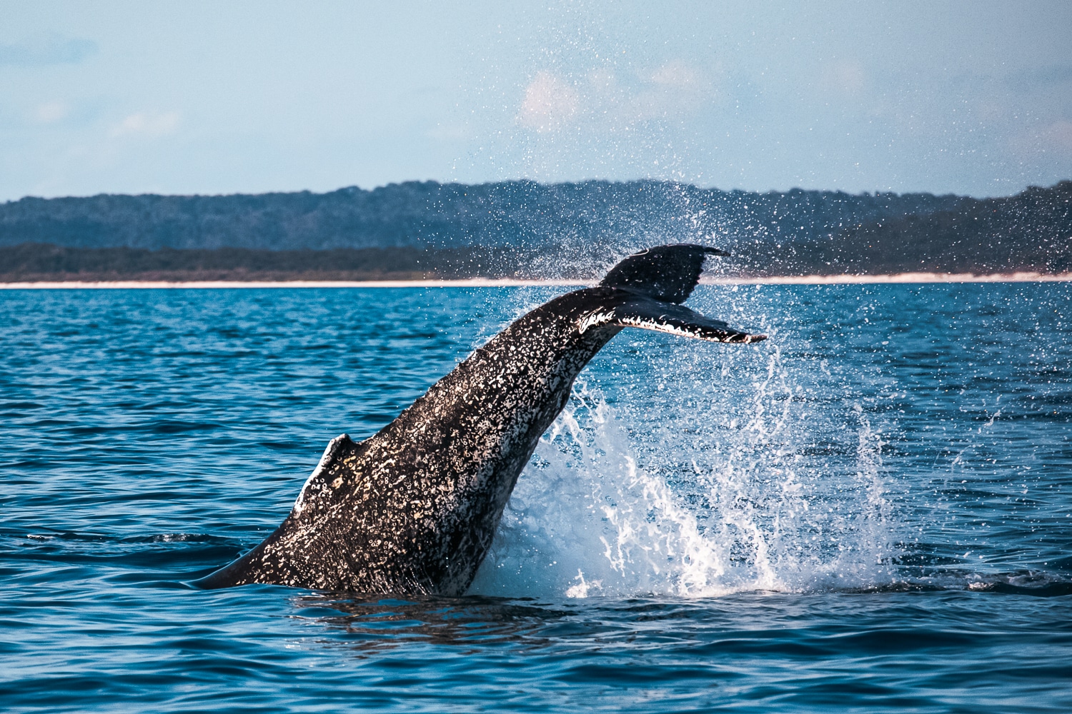 Here, whales linger. Sheltered by K’gari (formerly Fraser Island), the world’s largest sand island, Hervey Bay becomes a vital nursery where mothers rest, calves gain strength, and social behaviors unfold. The region is rich in marine life, including Indo-Pacific dolphins, dugongs, and a wide variety of seabirds, with other whale species also passing through.